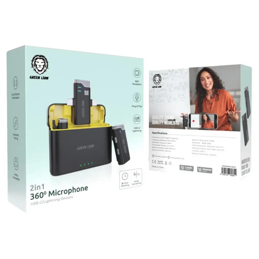 Green Lion 2 IN 1 360 Microphone USB-C Lightning – Black | GN2IN1MIC360D