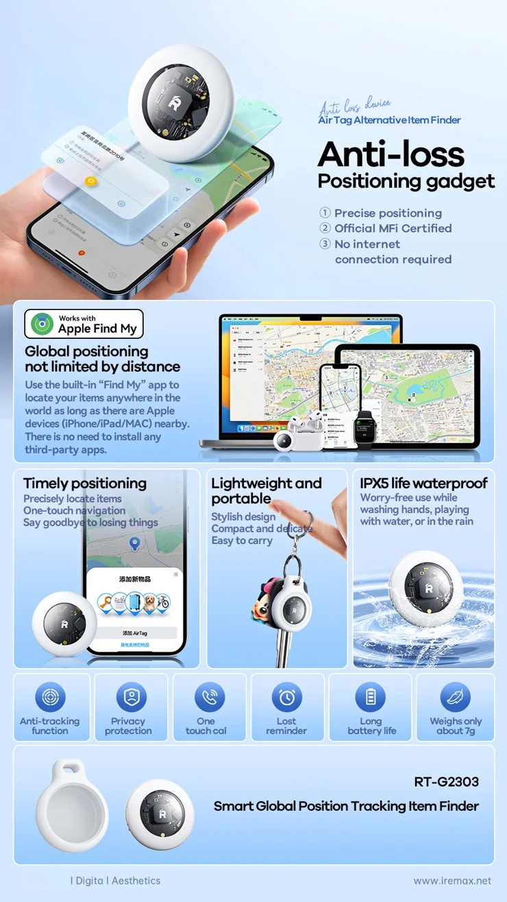 Remax Smart Globa Tracker Finder Works with Apple Find My | RT-G2303