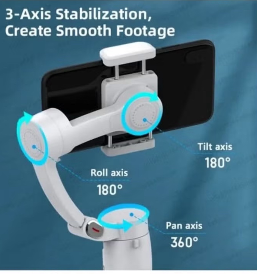 The stabilizer features intuitive controls and multiple shooting modes, giving you creative freedom to capture panoramic, selfie, and locked shots with ease. Powered by a long-lasting rechargeable battery, it supports hours of uninterrupted filming.